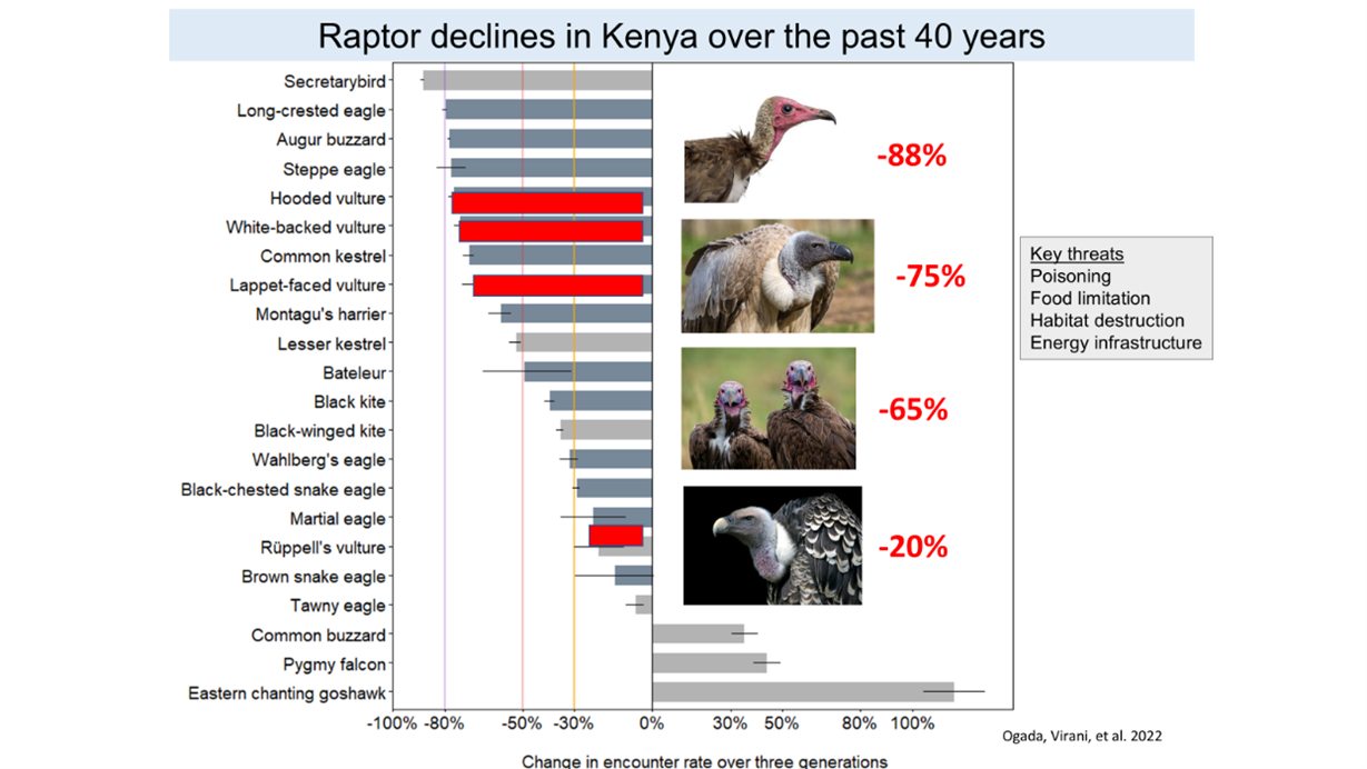 Another very alarming finding reported at the Serengeti meeting was the decline in a number of species, raptors being amongst the most affected. The Figure below should give everyone great concern.